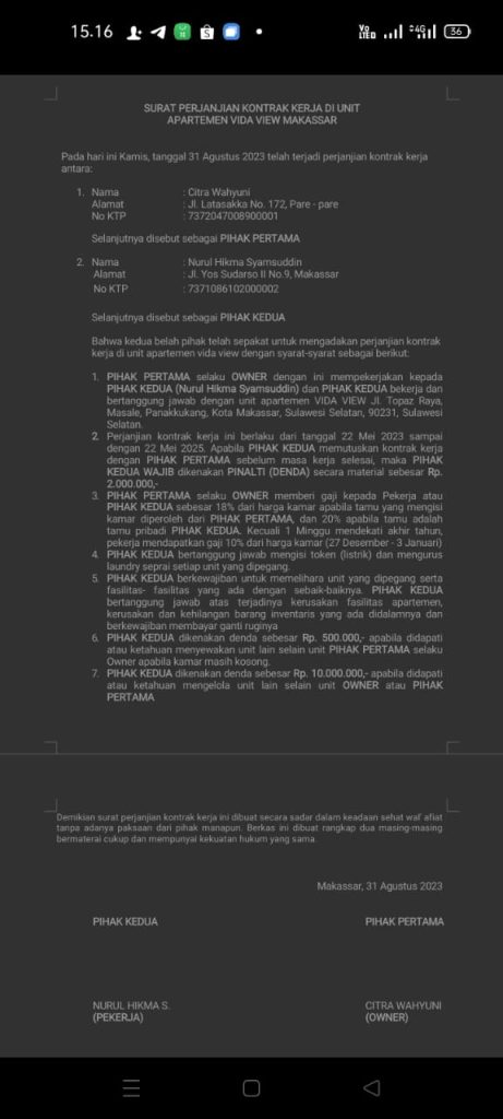 4.Isi kontrak tidak merujuk kepada ump di kota Makassar.