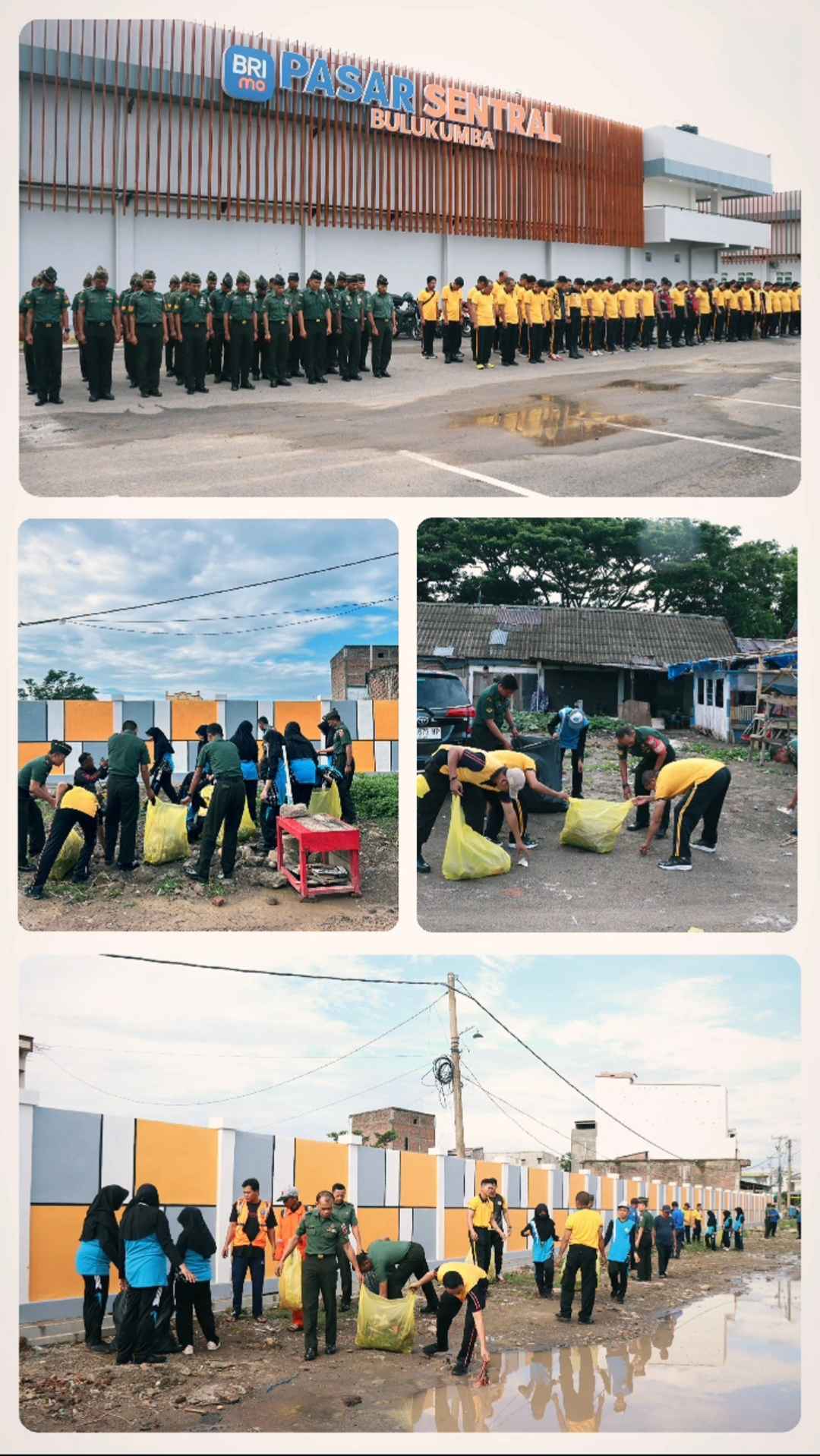 Sebelum kegiatan dimulai, seluruh peserta terlebih dahulu mengikuti apel bersama yang dilaksanakan di lokasi Pasar Sentral Bulukumba. Apel tersebut menjadi tanda dimulainya kegiatan kerja bakti sekaligus wujud kesiapan seluruh unsur yang terlibat.